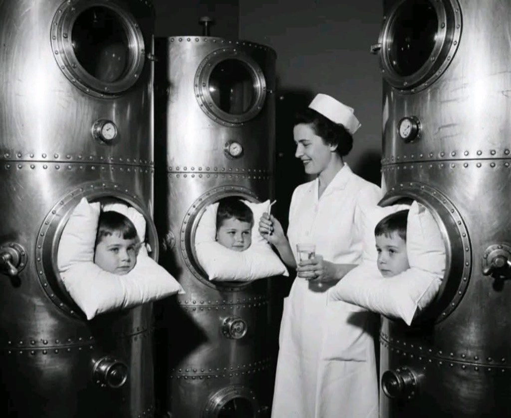 Molti bambini lottavano per sopravvivere rinchiusi all’interno di macchinari che a noi, oggi, sembrano usciti da un film di fantascienza: i famosi “polmoni d’acciaio”.