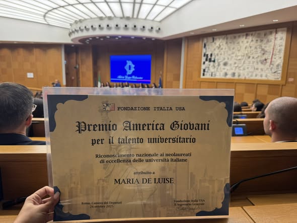 Un nuovo, prestigioso riconoscimento per i nostri giovani isolani: Maria De Luise è stata premiata con il Premio America Giovani per il talento universitario, conferito quest’oggi presso la Camera dei Deputati.