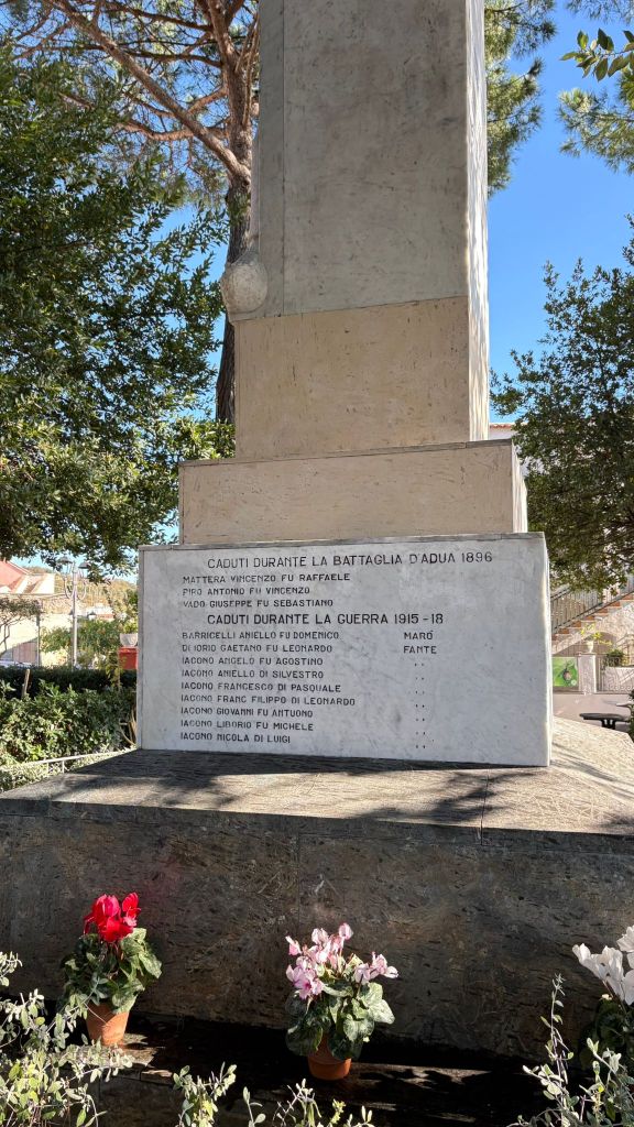 In tutta l’isola, a seguito dei vari conflitti che hanno bagnato di sangue il secolo scorso, specialmente nei due grandi conflitti mondiali, sono stati eretti monumenti a ricordo dei caduti, cioè di quelle persone che, eroicamente e con spirito di servizio alla patria, hanno sacrificato la loro vita. Sono andati al fronte e non sono più tornati.