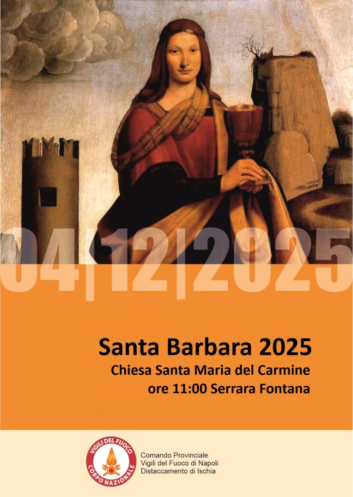 Quest’anno le celebrazioni in onore di Santa Barbara, patrona dei Vigili del Fuoco, si svolgeranno nel Comune di Serrara Fontana, luogo scelto per accogliere un momento di grande significato religioso e comunitario. La Santa Messa dedicata alla Patrona sarà celebrata il 4 dicembre alle ore 11:00 presso la Chiesa di Santa Maria del Carmine di Serrara da Don Antonio Mazzella, e vedrà la partecipazione del personale del Distaccamento dei Vigili del Fuoco di Ischia insieme ad Autorità Militari, Civili e Religiose oltre che a numerosi cittadini.