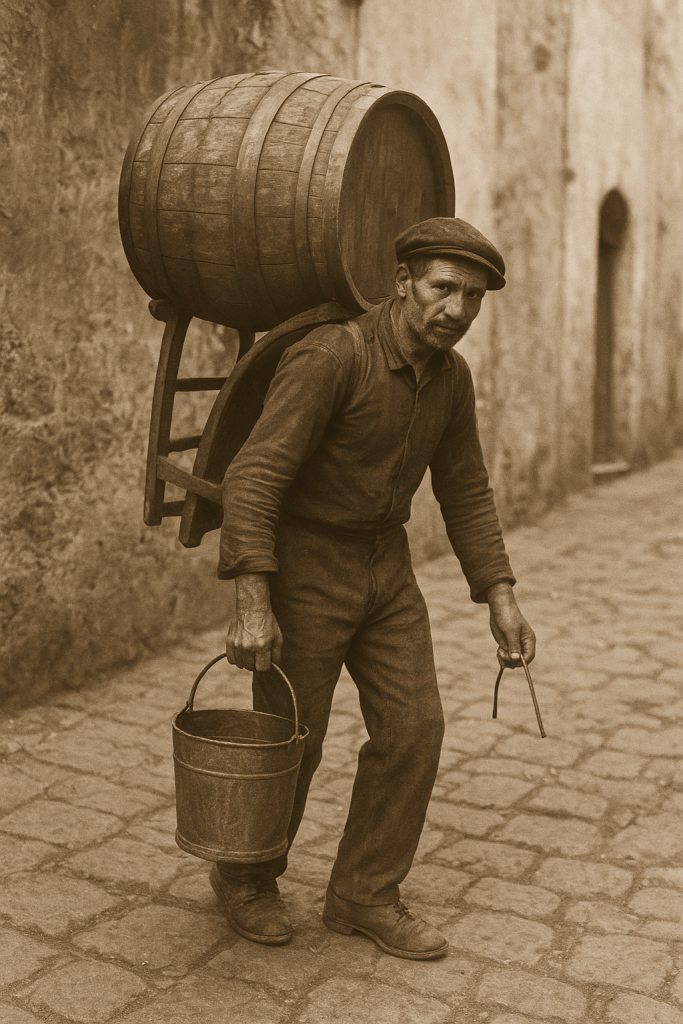 Girava per i vicoli con la botte sul carretto o con i recipienti sulle spalle, portando acqua potabile dalle sorgenti e dalle fontane pubbliche fino alle abitazioni.