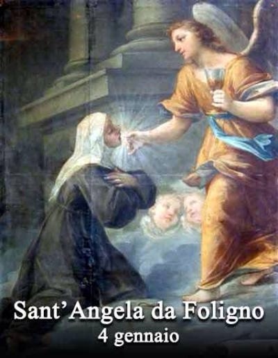 Sant’Angela da Foligno morì il 4 gennaio 1309. Fu beatificata da Papa Clemente XI l’11 luglio 1701 e canonizzata da Papa Francesco il 9 ottobre 2013.