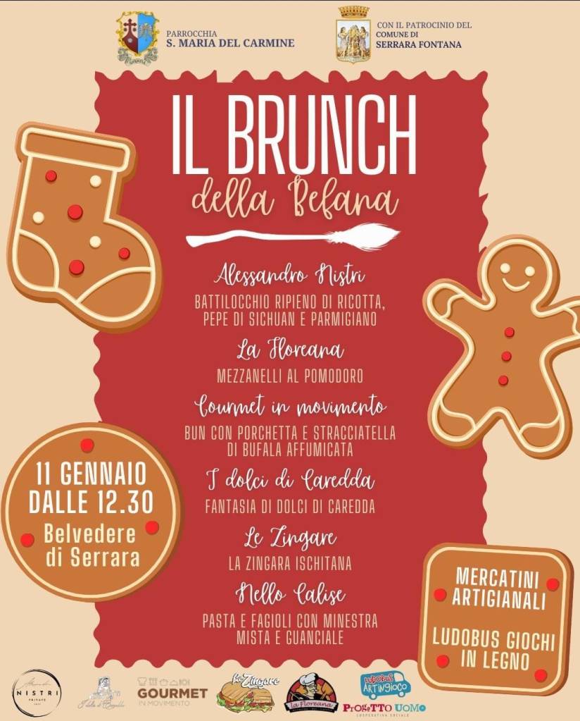 È quello che accade a Serrara, dove il Brunch della Befana, inizialmente previsto per il giorno dell’Epifania, era stato rinviato a causa delle avverse condizioni meteo e ora torna in calendario domenica 11 gennaio, a partire dalle ore 12.30, nella splendida cornice del Belvedere di Serrara.