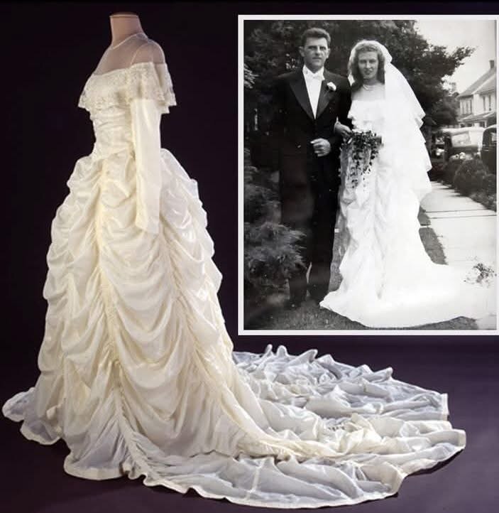 Oggi quell’abito è custodito allo Smithsonian National Museum of American History, testimone silenzioso di una storia in cui la guerra lascia spazio all’amore e la sopravvivenza si trasforma in promessa eterna. 🤍✨