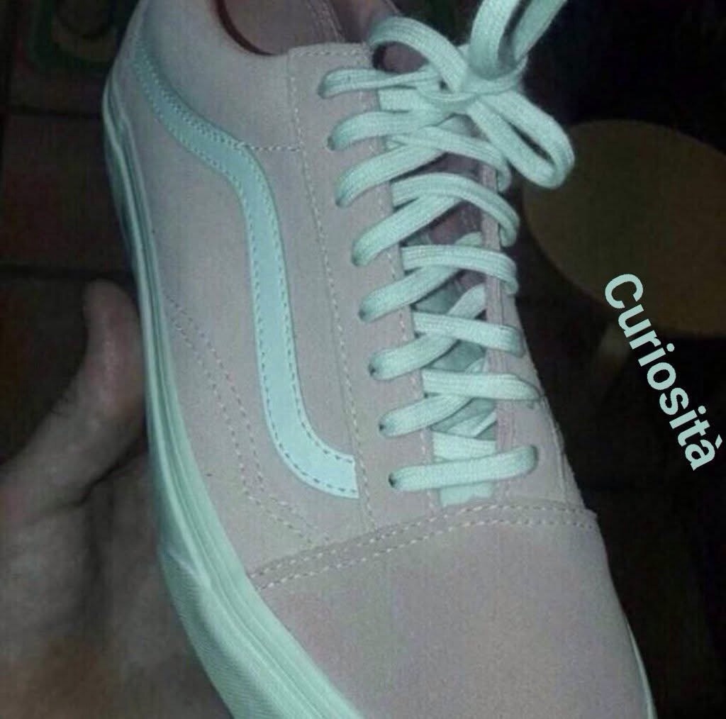 per alcuni le scarpe sono rosa con i lacci bianchi, per altri appaiono grigie con lacci verde acqua.