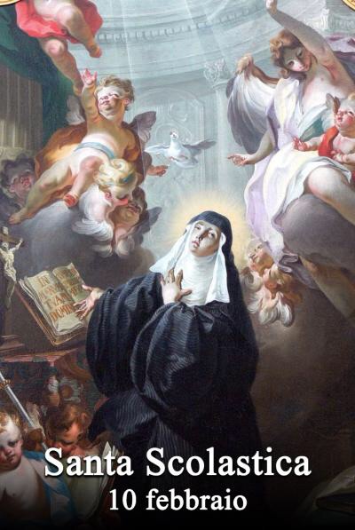 Santa Scolastica morì il 10 febbraio 547 circa. È considerata la fondatrice del ramo femminile dell’Ordine Benedettino ed è invocata contro le tempeste e i fulmini. La sua vita resta esempio di amore profondo per Dio e di fiducia totale nella forza della preghiera.