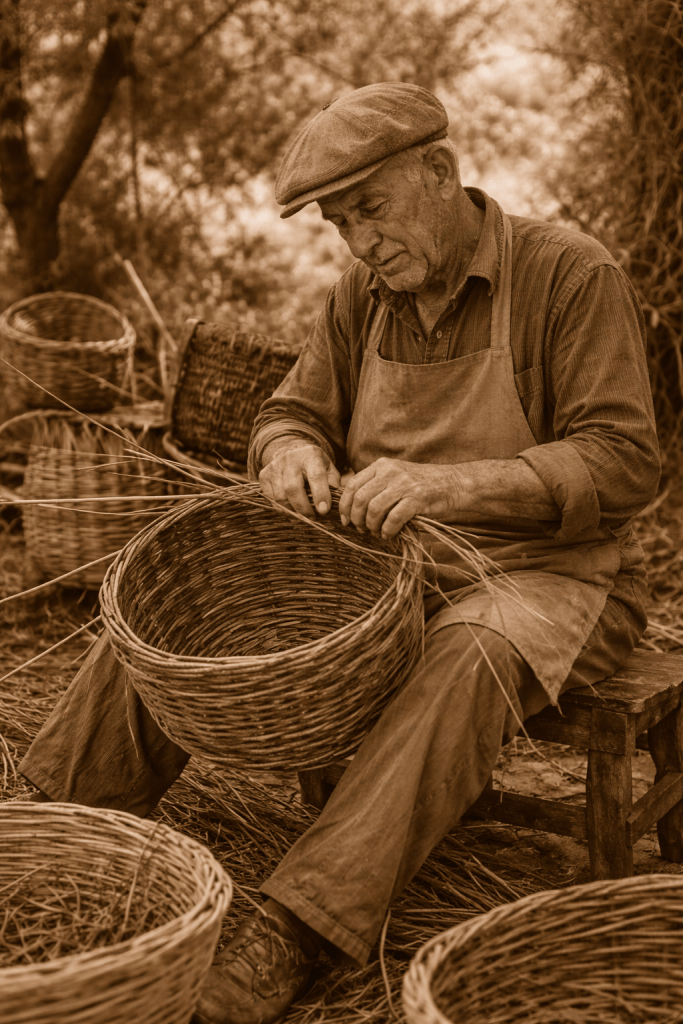 Tra le campagne e i boschi dell’isola, c’era chi intrecciava pazientemente rami e canne fino a trasformarli in oggetti utili per la vita quotidiana.