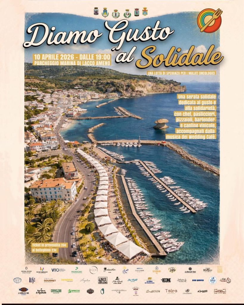 Una serata all’insegna del gusto, della convivialità e soprattutto della solidarietà. È questo lo spirito di “Diamo Gusto al Solidale”, l’evento in programma per il prossimo 10 aprile 2026 a partire dalle ore 19:00, nella suggestiva cornice del parcheggio Marina di Lacco Ameno.