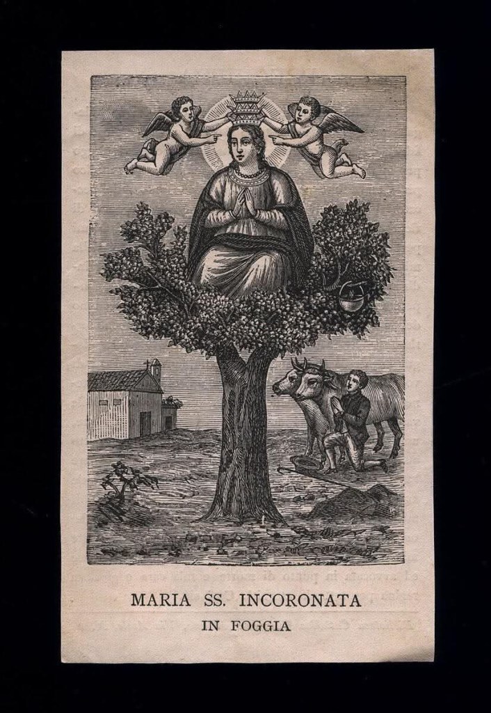 La Madonna si manifestò al di sopra di una quercia, nel Bosco del Cervaro, nei pressi di Foggia, al conte di Ariano Irpino, che si trovava a caccia nel bosco, e al pastore Strazzacappa, in cerca di un bue smarrito.